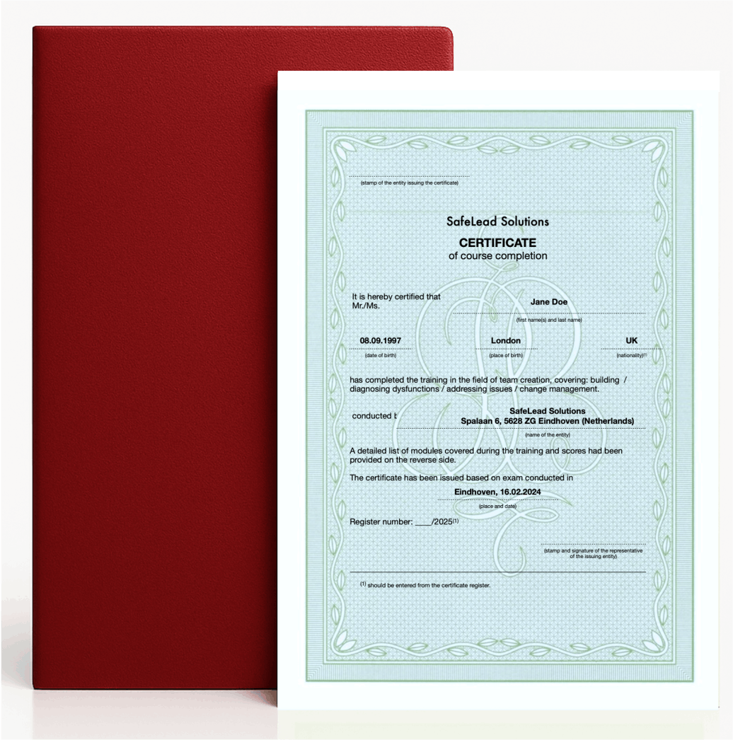 You will learn how to lead a team through change processes using professional tools and techniques. You will understand the importance of conscious communication and support in this process. You will also gain knowledge on how to prepare and conduct a team-building workshop that is not just a temporary activity, but a starting point for lasting transformation. You will learn about 360-degree assessment methods and develop a specific action plan that will translate into real, measurable results.